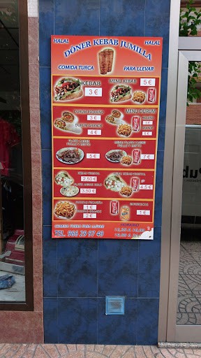 Datos Nombre: Jumilla Doner Kebab Web: No disponible Especialidad: Restaurante turco Servicios: Comida para llevar, platos pequeños, almuerzo, casual Teléfono …