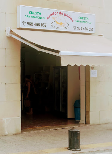 Asador de Pollos Cuesta de San Francisco es un restaurante de pollo situado en la encantadora ciudad de Lorca. Es conocido por ofrecer deliciosas comidas para llevar a todos aquellos clientes que buscan una opción rápida y sabrosa. Este establecimiento se ha convertido en el lugar ideal para aquellos que desean disfrutar de un excelente almuerzo sin tener que preocuparse por la preparación de la comida.
